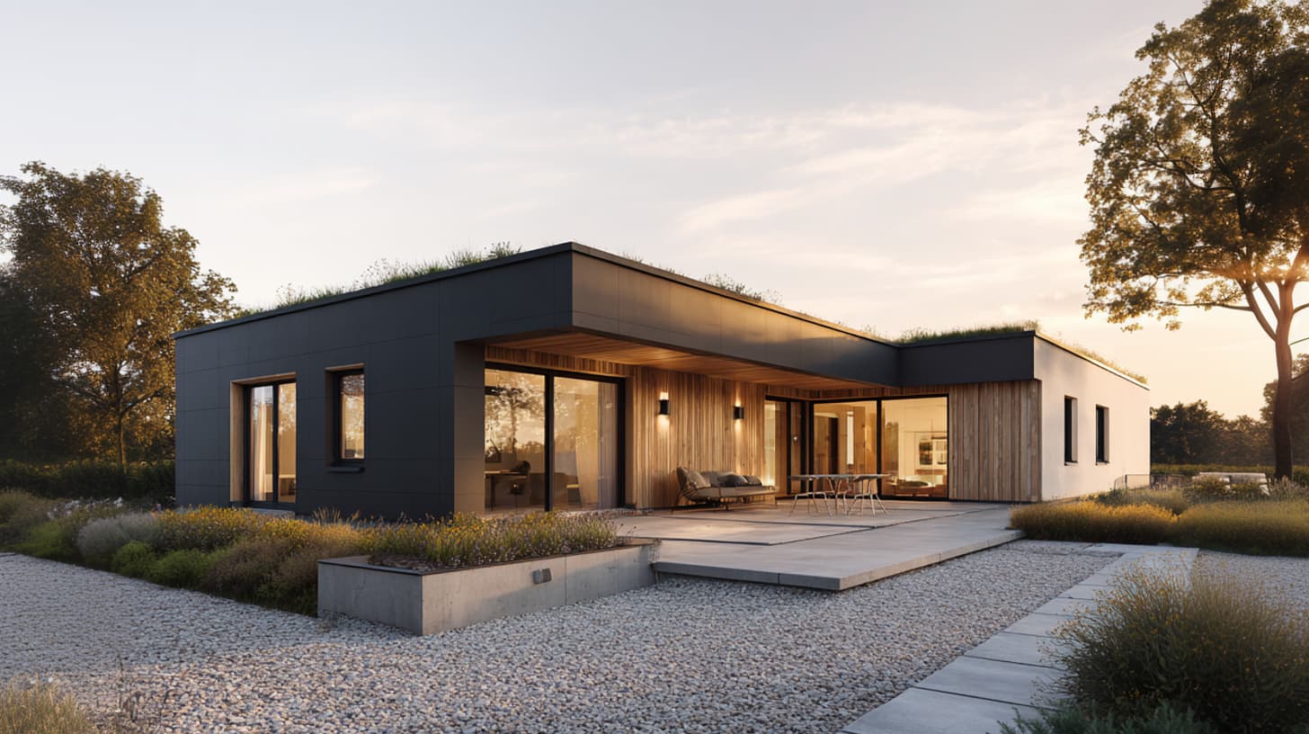 Ein weiterer Pluspunkt ist die flexible Grundrissgestaltung. Anders als bei mehrgeschossigen Häusern lassen sich Zonen für Wohnen, Schlafen und Arbeiten individuell anordnen, ohne vertikal verbunden zu sein. Moderne Bungalows überzeugen durch ihre Offenheit: Küchen und Wohnbereiche gehen ineinander über, raumhohe Fenster holen den Garten ins Haus. Gleichzeitig bietet der Grundriss Privatsphäre, indem Schlafräume in ruhigen Bereichen angeordnet werden können. Die barrierearme Bauweise ermöglicht vorausschauendes Planen: breitere Türen, schwellenlose Übergänge und ausreichend Bewegungsfläche sorgen dafür, dass das Haus mit Ihnen älter wird.