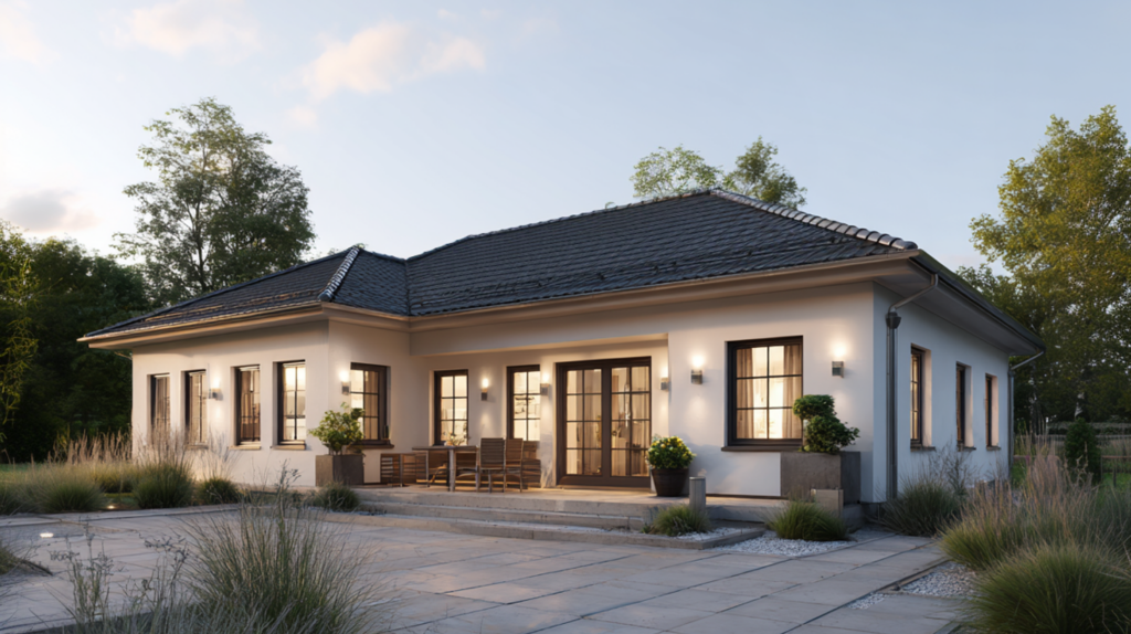 Ein Bungalow bietet eine klare und praxisnahe Antwort auf die Frage, wie modernes Haus bauen heute aussehen kann. Die Bauweise auf einer Ebene ermöglicht eine übersichtliche Raumstruktur, kurze Wege und eine hohe Nutzbarkeit im Alltag. Ohne Treppen entsteht ein Wohnkonzept, das Komfort, Sicherheit und langfristige Planung miteinander verbindet und im zeitgemäßen Hausbau zunehmend an Bedeutung gewinnt.