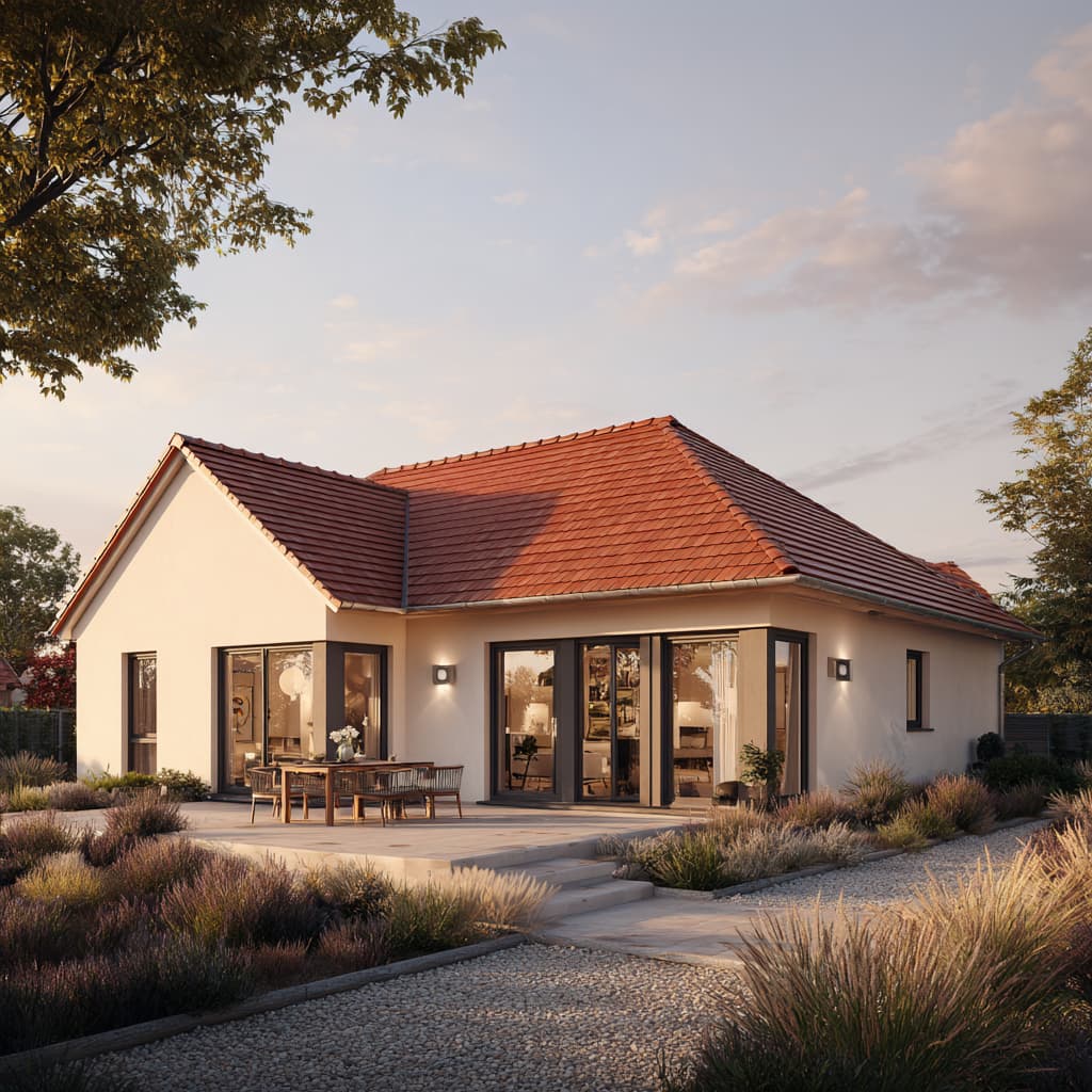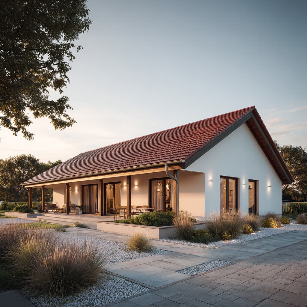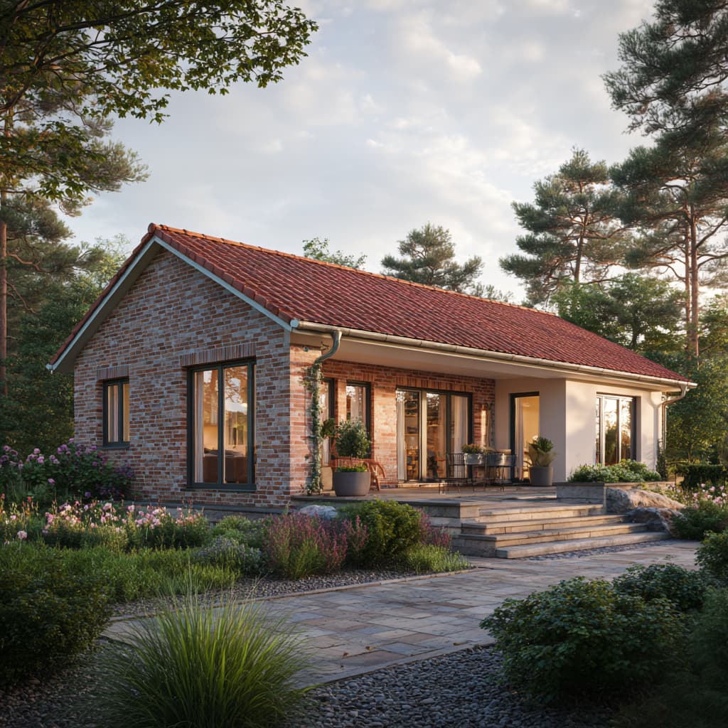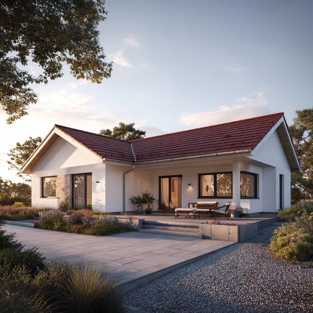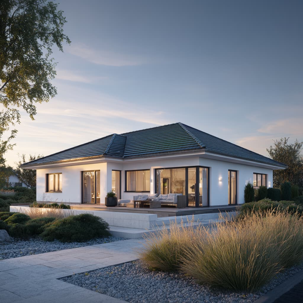 Nicht zuletzt kann auch die Außenanbindung des Bungalows den Start erleichtern: Ein kurzer, idealerweise überdachter Weg vom Haus zur Garage oder Carport sorgt dafür, dass alle bei Wind und Wetter schnell und trocken ins Auto kommen. Kein hektisches Rennen durch den Regen – das Auto wartet in unmittelbarer Nähe, und die Kinder gelangen ohne Umwege vom Wohnzimmer in den Wagen. Organisation heißt im Bungalow-Konzept also nicht nur Aufräumen, sondern schon beim Bauen ans Familienleben zu denken: Genügend Stauraum, logisch platzierte Garderoben und eine Haustechnik, die vielleicht per Smart Home den Kaffee automatisch brüht, tragen ihren Teil zu einem reibungslosen Ablauf bei. All das schenkt Ihnen jeden Morgen ein Stück mehr Gelassenheit.